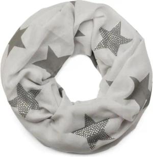 Loop Schal mit Sterne Muster und edler Strass Applikation, Schlauchschal, Tuch, Damen 01018086, Farbe:Hellgrau-Grau (One Size)