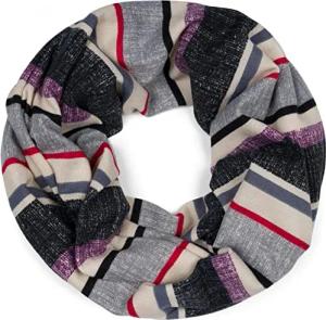 Unisex Loop Schal mit buntem Streifen Muster, Leichter Schlauchschal mehrfarbig gestreift, Tuch 01016215, Farbe:Lila-Grau-Beige