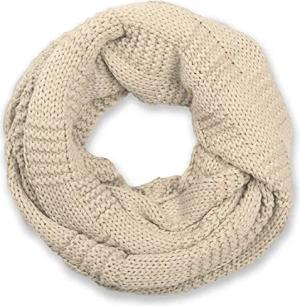 Unisex Strick Loop Schal mit Patentmuster, Uni Feinstrick Schlauchschal, Winter Strickschal 01018152, Farbe:Beige
