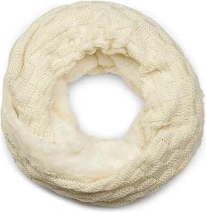 warmer Feinstrick Loop Schal mit Flecht Muster und sehr weichem Fleece Innenfutter, Schlauchschal, Unisex 01018150, Farbe:Creme-Beige
