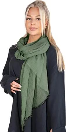 weicher Stola Schal in Unifarben mit Fransen, Tuch, Unisex 01017070, Farbe:Grün