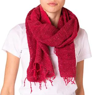 SC514 Damen XL Vintage Schal mit kleinen Fransen, Farbe:fuchsia, Mode Größe:One Size