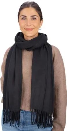 Cashmirillo Schal - ca. 40 x 180 cm Lang Leicht Warm und Kuschelig - Herbst und Winter Kuschelschal - Stola Tuch mit Fransen für Damen und Herren - Dunkelgrau