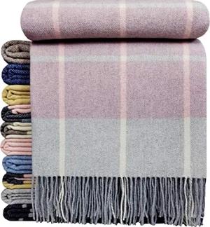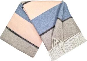 Kaschmir Decke Wolldecke Wohndecke 100% Merinowolle - Kaschmir - Mix 140 x 200 cm sehr weiches Plaid Kuscheldecke Faro (Rosa-Blau-Grau (K))