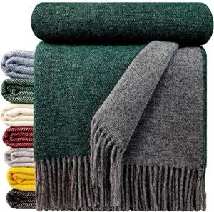 Wolldecke 100% Schurwolle Wohndecke in versch. Farben 140 x 200 cm Tagesdecke Schurwolldecke Woll-Plaid Tirol (Grau-Grün (Double face), 140 x 200 cm)