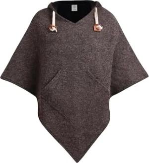 Poncho Damen Winter | Wolle & Polarfleece | Outdoor Poncho Damen mit Kapuze warm Fleece Rollstuhl Wolljacke Wollumhang - Abajo Wolle S-M braun