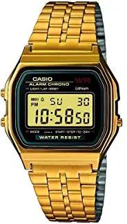 Unisex Quartz Armbanduhr, 35.00mm Gehäusegröße mit LCD digital Zifferblatt und Gold Metallarmband Armband A159WGEA-1EF