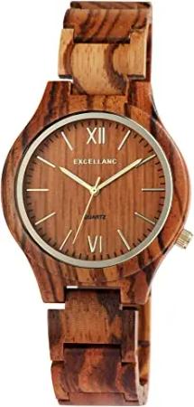 Unisex-Holzuhr Leuchtzeiger Faltschließe Analog Quarz 2810007 (Zebraholz)
