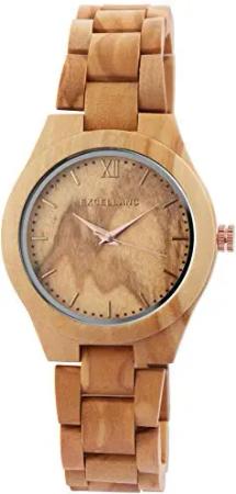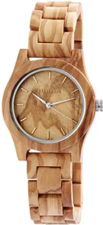 Damen-Holzuhr Leuchtzeiger Faltschließe Analog Quarz 1800235 (Olivenholz)