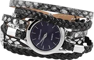 Damen-Uhr Kunstleder Metall Wickelarmband Druckknopf 1900180 (schwarz blau)