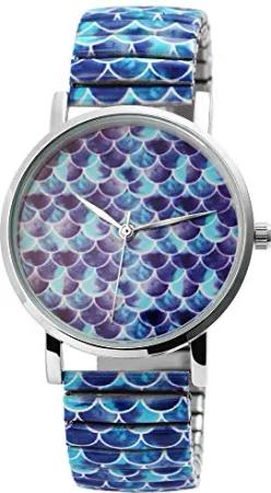 Damen-Uhr Armbanduhr Zugarmband Zugband Edelstahl bunt 1700075 (Mehrfarbig)