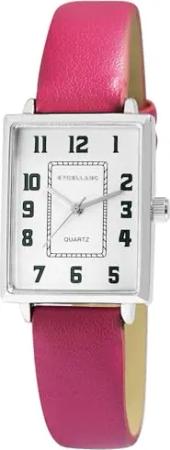 Damenuhr mit Lederimitationsarmband, pink/silberfarben