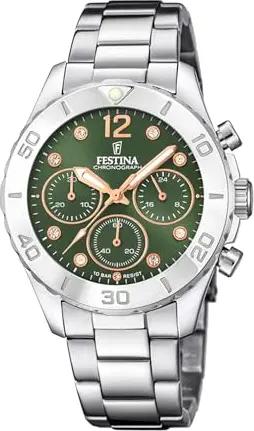 Damen Uhr Analog Edelstahl 316L Silber - Quarz Chronograph - Mineralglas hochresistent - 10 ATM wasserdicht F20603/3 - Boyfriend Collection
