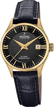 F20011/4 Damenuhr Schwarz/Goldfarben mit Saphirglas