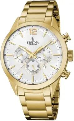 Herren Uhr Analog aus Edelstahl 316L Goldfarben - Quarzwerk - Chronograph - Kalender - Widerstandsfähiges Mineralglas - Wasserdicht bis 10 ATM F20705/2 Timeless Chronograph