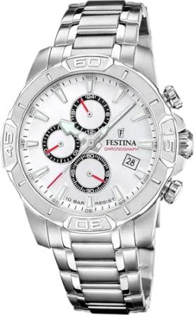 Herren Uhr Analog aus Edelstahl 316L Silber - Quarzwerk - Chronograph - Kalender - Mineralglas mit hoher Widerstandsfähigkeit - Wasserdicht bis 10 ATM F20543/4 Chrono Bike