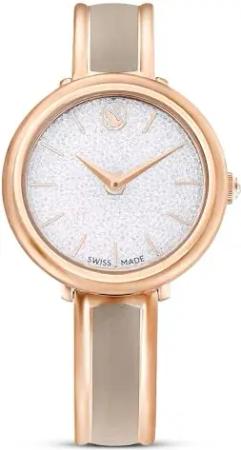 Crystalline Bangle Uhr, Beige, Analoge Armbanduhr mit Metallarmband, Roségoldfarbenem Finish und Strahlenden Kristallen, Armbandlänge: 16.2-19.2 cm, Armbandbreite: 1.2 cm