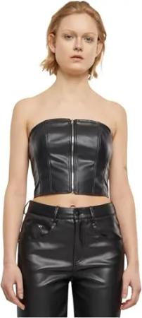 Ladies Synthetic Leather Bandeau Top Black, S