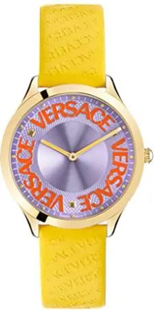 Versce Damen Armbanduhr 38 mm Logo Halo gelbes und extra Melanese Armband VE2O00822