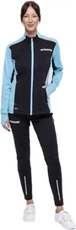 Damen Winter Laufset Thermo Pro Line Laufhose Lang Laufshirt Langarm Sweatshirt Fleece Funktionsshirt Sport Langarmshirt Jogginghose Leggins - schwarz-blau - XL