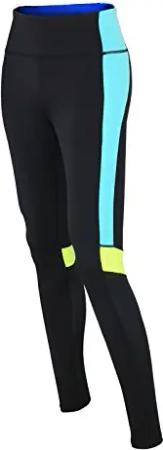 RED DECOCT Sport Damen Fitnesshose Lang/Laufhose/Funktionshose/Trainingshose/Yoga/Hoher Bund/Reflektoren/Schwarz/Neon - XS