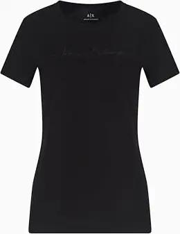 Women's Short Sleeve Front Signed Logo T-Shirt, Black, XXL