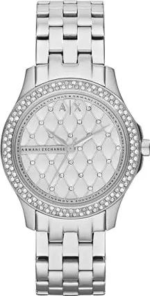 Uhr für Damen , Dreizeigeruhrwerk, 36mm Silbernes Edelstahlgehäuse mit Edelstahlarmband, AX5215