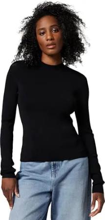 Women's Long Sleeve Front Big Signed Logo T-Shirt, Black, M