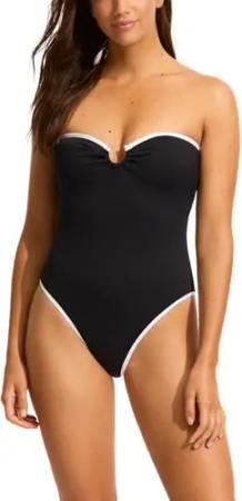 Damen-Badeanzug, Standard-Bandeau-Neckholder, einteiliger Badeanzug, Beach Bound Black, 4