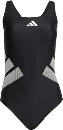 Damen 3 Bar Logo Swimsuit, Black / White, 30