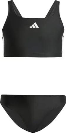 Girl's 3-Stripes V-Back Bikini, Black/White, 4-5 Years