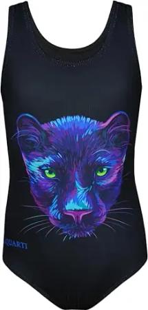Badeanzug Mädchen – Sportlicher Mädchen Badeanzug mit Ringerrücken Print, Farbe: Panther/Schwarz, Größe: 134