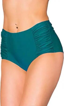 Bikinihose Damen mit Hohem Bund – Klassische Bikinihosen für Damen in Großen Größen, Farbe: Petrolgrün, Größe: 40