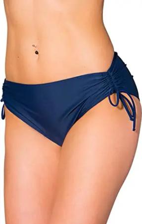 Bikinihose Damen mit Raffung – Bikinihosen für Damen mit Bindebändern, schnelltrocknend, Farbe: Dunkelblau, Größe: 48