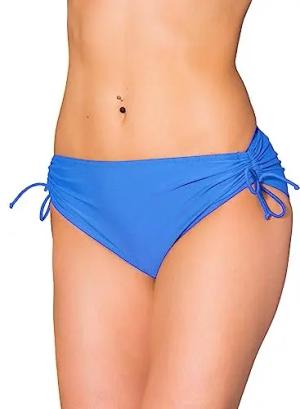 Bikinihose Damen mit Raffung – Bikinihosen für Damen mit Bindebändern, schnelltrocknend, Farbe: Jeansblau, Größe: 42