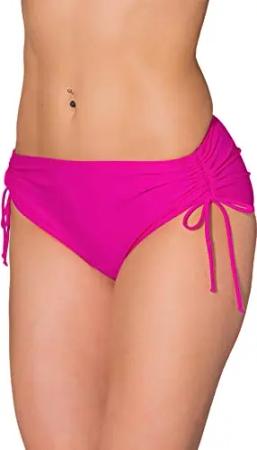 Bikinihose Damen mit Raffung – Bikinihosen für Damen mit Bindebändern, schnelltrocknend, Farbe: Pink, Größe: 46
