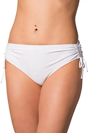 Bikinihose Damen mit Raffung – Bikinihosen für Damen mit Bindebändern, schnelltrocknend, Farbe: Weiß, Größe: 44