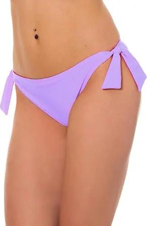 Bikinihose Damen mit seitlicher Schnürung – Hüftslip Bikinihosen für Damen in Unifarben, Farbe: Lila, Größe: 42