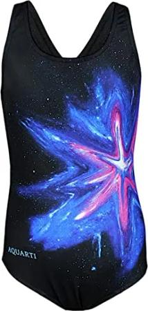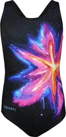 Mädchen Badeanzug – Chlorresistenter Sport Badeanzug Mädchen mit Muscleback, Farbe: Bunter Fleck Rosa Blau/Schwarz, Größe: 134
