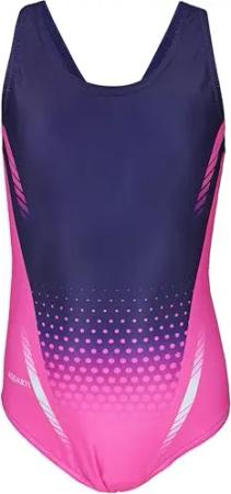 Mädchen Badeanzug – Chlorresistenter Sport Badeanzug Mädchen mit Muscleback, Farbe: Bunter Fleck Rosa Blau/Schwarz, Größe: 152