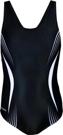 Mädchen Badeanzug – Chlorresistenter Sport Badeanzug Mädchen mit Muscleback, Farbe: EP2304 Schwarz Grau Weiß, Größe: 134