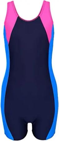 Mädchen Badeanzug mit Bein Ringerrücken – Sport Badeanzug Mädchen mit Bein und Racerback, Chlorresistent, Farbe: Dunkelblau/Blau/Pink, Größe: 140