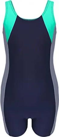 Mädchen Badeanzug mit Bein Ringerrücken – Sport Badeanzug Mädchen mit Bein und Racerback, Chlorresistent, Farbe: Dunkelblau/Grau/Grün, Größe: 146