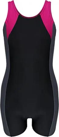Mädchen Badeanzug mit Bein Ringerrücken – Sport Badeanzug Mädchen mit Bein und Racerback, Chlorresistent, Farbe: Schwarz/Graphit/Amarant, Größe: 152