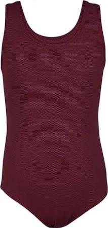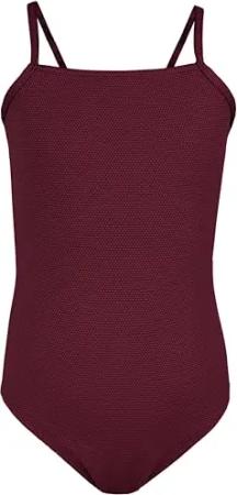 Mädchen Badeanzug mit Ringerrücken – Sport Badeanzug Mädchen, Chlorresistent, Farbe: Jacquard Punkte Rot Braun, Größe: 152