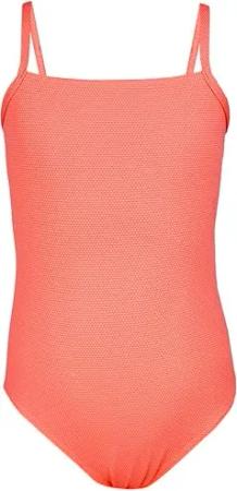 Mädchen Badeanzug mit Spaghettiträgern Streifen – Sport Badeanzug Mädchen, Chlorresistent, Farbe: Jacquard Punkte Orange, Größe: 164