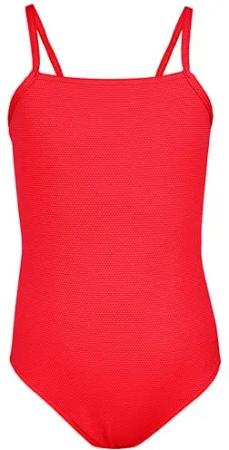Mädchen Badeanzug mit Spaghettiträgern Streifen – Sport Badeanzug Mädchen, Chlorresistent, Farbe: Jacquard Punkte Rot, Größe: 170
