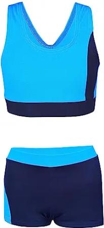 Mädchen Badeanzug – Sport Badeanzug Mädchen Zweiteilig mit Racerback und Badehose, Farbe: Dunkelblau/Türkis, Größe: 134