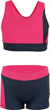 Mädchen Badeanzug – Sport Badeanzug Mädchen Zweiteilig mit Racerback und Badehose, Farbe: Dunkelgrau/Pink, Größe: 146