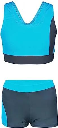 Mädchen Sport Bikini Racerback Bustier & Bikinislip, Farbe: Graphit/Blau/Rosa, Größe: 146